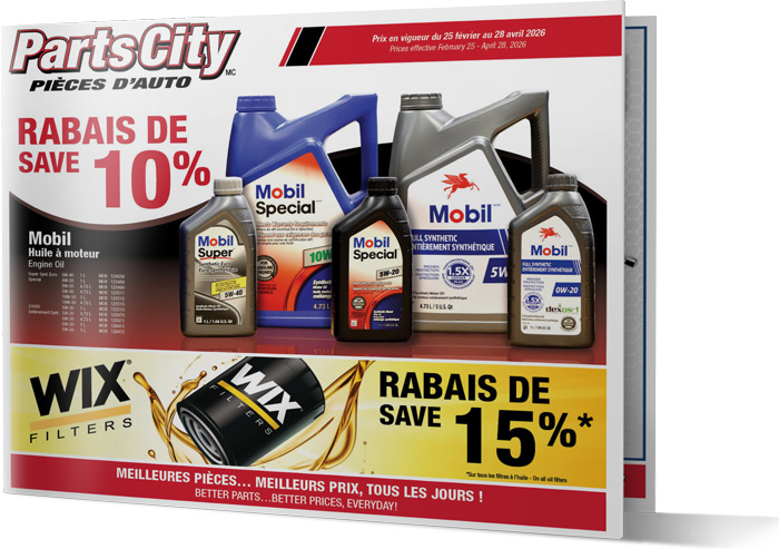 Chez Parts City Pièces d’Auto, offrir est notre façon de vous remercier de votre fidélité. Profitez chaque mois de promotions exclusives et d’avantages uniques.